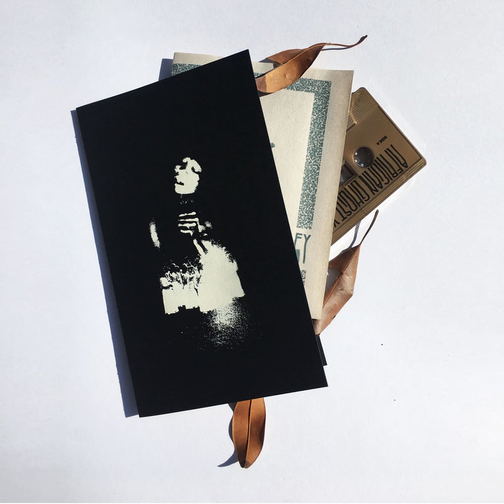 Edition of 50 housed in hand-silkscreened covers with fold-out 9" x 12" newsprint insert, inside 4 mil clear plastic bag with dead leaves. 13 copies of the edition have been printed with gold ink. Gold cassette shells with black imprint, professionally duplicated on Emtec Ferric tape.